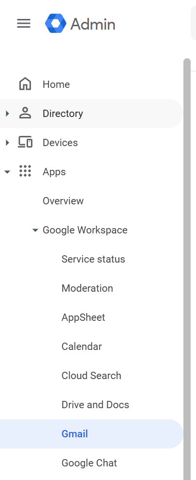 Step 2 – Navigate to Apps → Google Workspace → Gmail and then Content Compliance